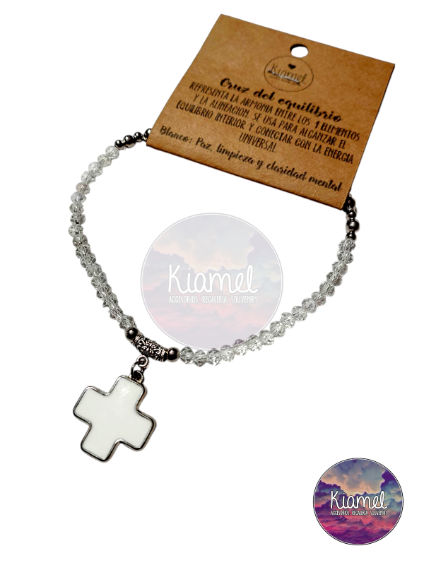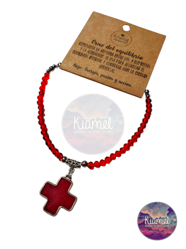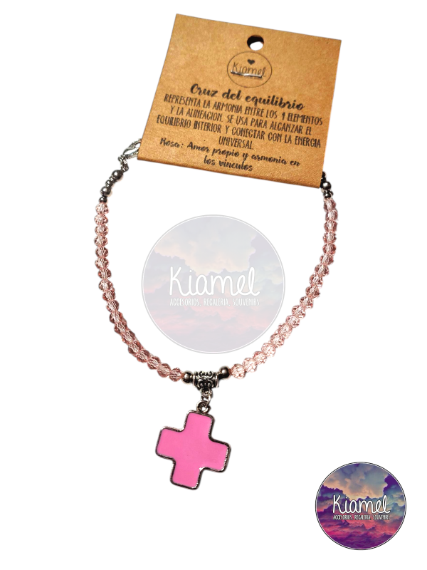Pulseras de símil-cristal, con dije esmaltado de la Cruz del Equilibrio. Representa la armonía entre los 4 elementos y la alineación. Se usa para alcanzar el equilibrio interior y conectar con la energía universal. Intencioná lo que buscás eligiendo el color que represente lo que necesitás: